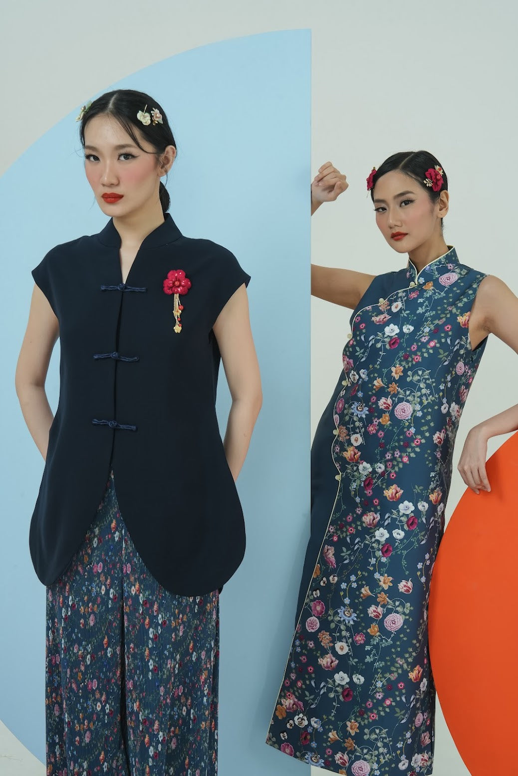 A high-collar top inspired by the elegance of blooming petals, perfect for Chinese New Year celebrations. Featuring subtle flower-petal inspiration and a refined silhouette, it blends traditional charm with modern sophistication for a fresh, festive look. Match perfectly with Tulip pants or easily match with any other style bottom.
